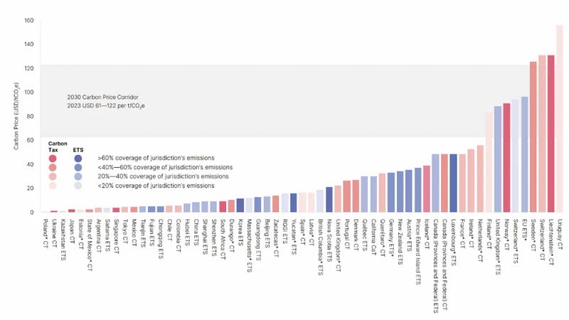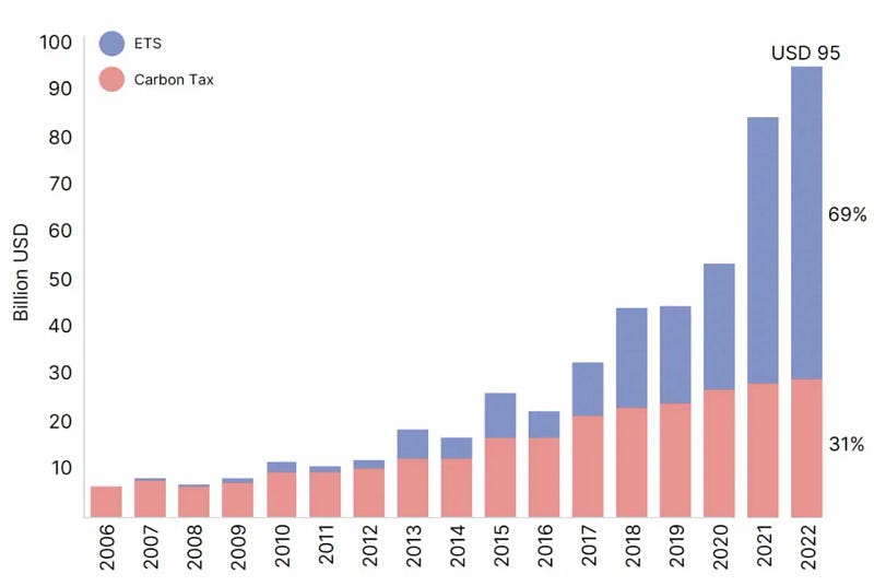 世界銀行發布2023《碳定價現況與趨勢報告》,2022年全球碳價收入逼近千億美元,但相較全球政府對化石燃料補貼創近1兆美元的新高,目前的碳價水準仍無法有效、即時推動減碳,更無法回應《巴黎氣候協定》阻止全球升溫不超過2°C的目標。
