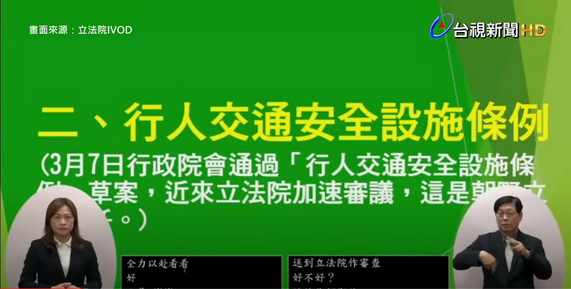 行政院會通過「行人交通安全設施條例」草案,通過日期:中華民國 113 年 3 月 7 日第 3895 次院會決議 新聞稿