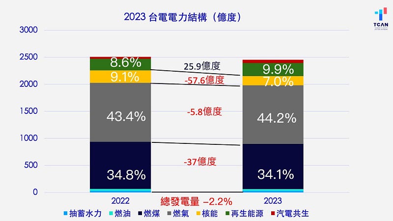 (b). 2023年台電電力結構 (製圖by家緯)