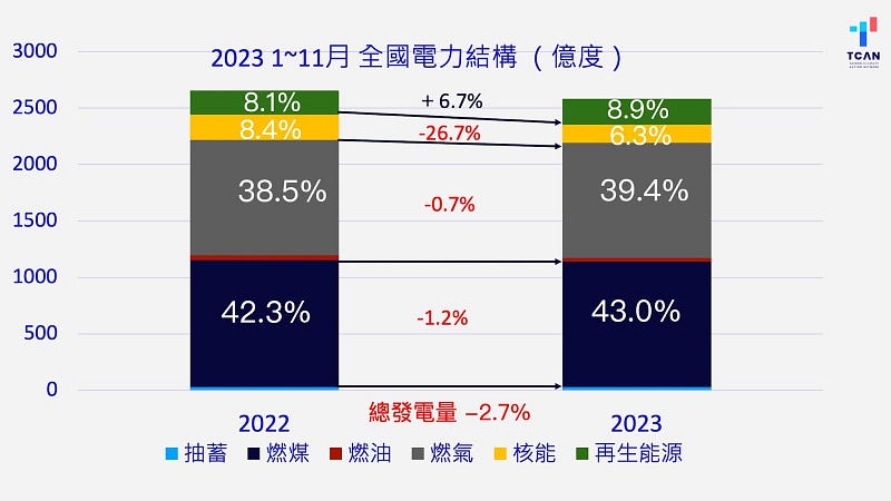 (a). 2023年1月~11月全國電力結構(取自趙家緯臉書
