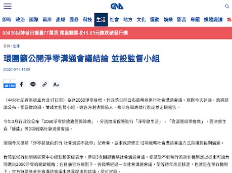 要求政府修正淨零十二項關鍵戰略的社會溝通會議方式,並規劃長期溝通機制