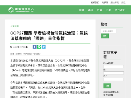 邀請學者及NGO工作者,分享COP27的觀戰重點以及其對臺灣的啟示