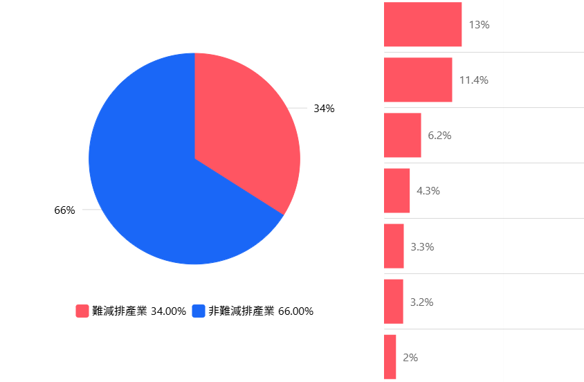 難減排產業碳排佔臺灣產業部門總排放量比例